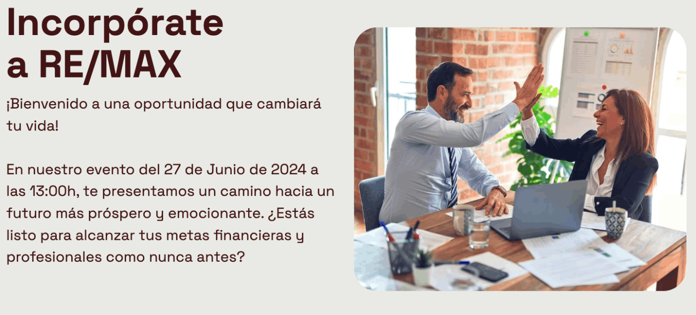 Gozar de autonomía, libertad e independencia, sin horarios, eres tu propio jefe pero con el apoyo del Broker y de toda la organización RE/MAX.